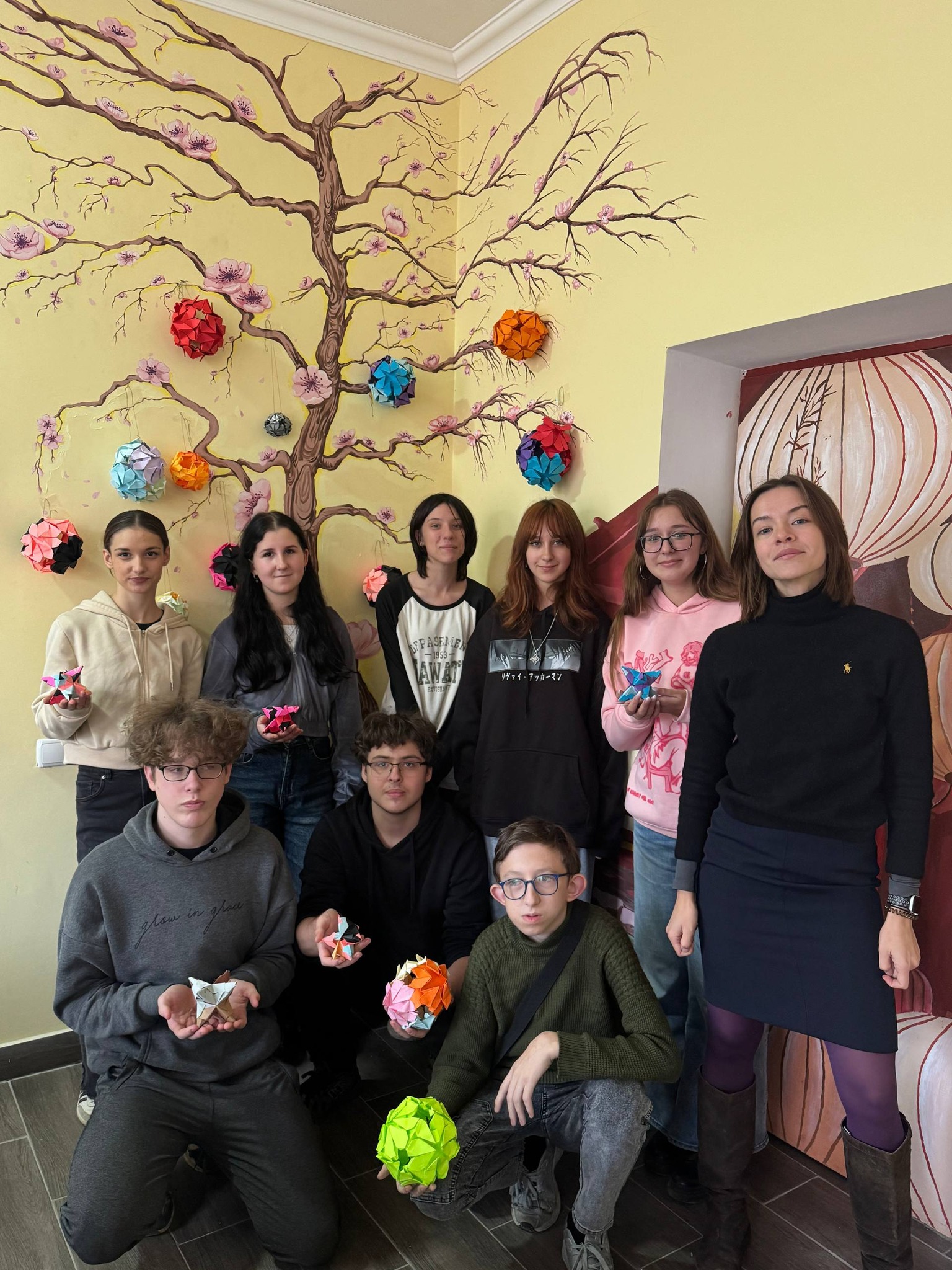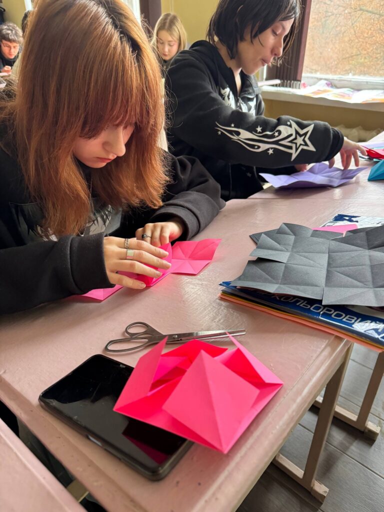 Під час творчого заняття здобувачі освіти дізналися про історію цього давнього японського мистецтва, опанували техніку складання паперу та власноруч створили модульне оригамі «Кусудама». Підлітки настільки захопилися процесом, що перетворили звичайне заняття на справжню творчу майстерню, де панували фантазія, натхнення й гарний настрій.