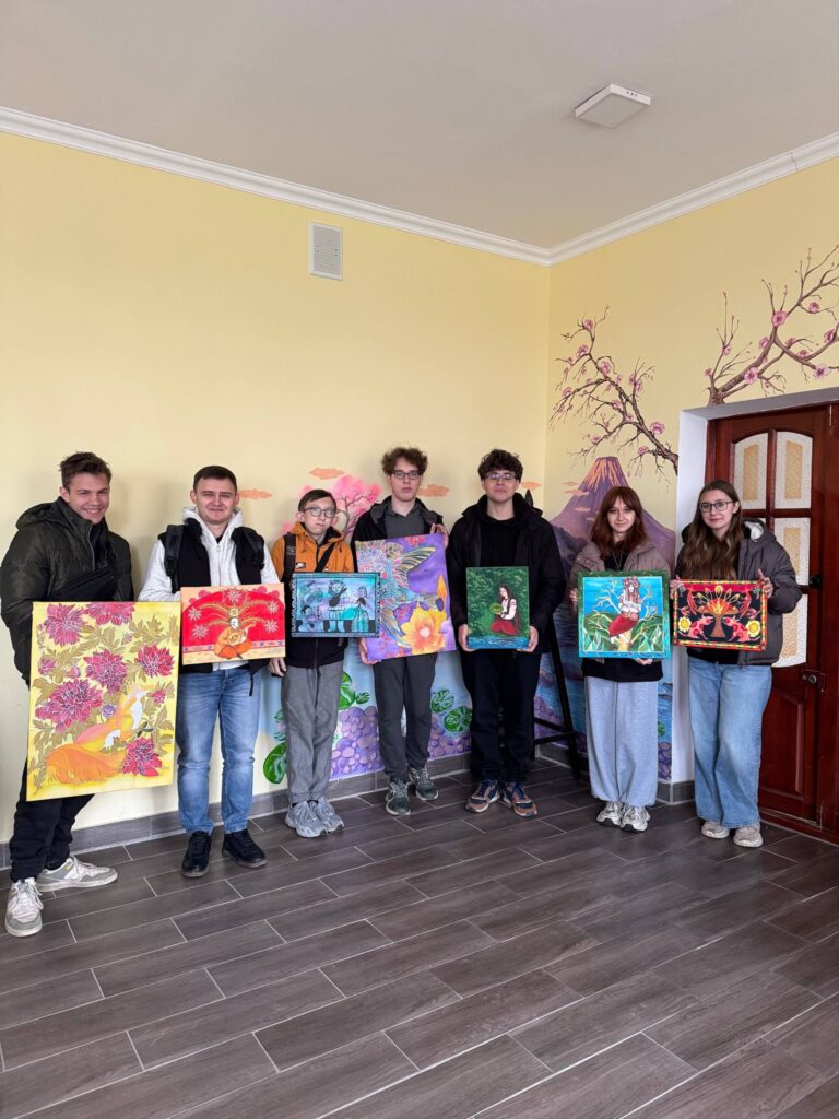У Бердичівському професійному будівельному ліцеї з нагоди Дня художника здобувачі освіти І курсу за професією «Живописець; Оформлювач вітрин, приміщень та будівель» разом з майстром виробничого навчання ШАДРІНОЮ Катериною Андріївною продемонстрували свої творчі вміння, презентувавши яскраві роботи, виконані у техніках народного розпису та батіку.